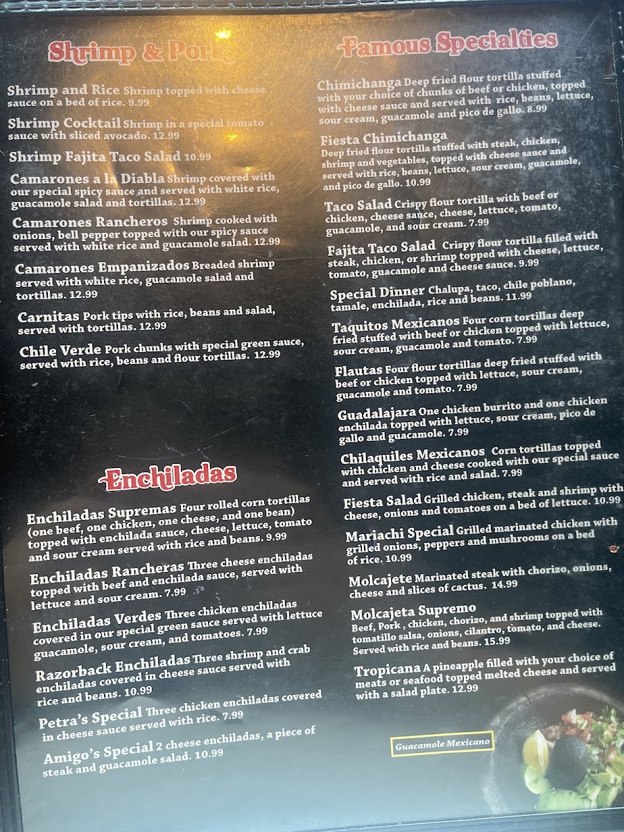 Welcome to El Parian Mexican Food, a hidden gem located in Pine Bluff, Arkansas. Our menu is a vibrant celebration of authentic Mexican cuisine that promises to tantalize your taste buds. Start with our crowd-pleasing Nachos El Parian, loaded with cheese, beef, and chicken, or indulge in the seafood delight of Nachos Veracruz featuring shrimp and crab. For lunch, savor our Taco Lunch or Tamale Lunch, both served with delicious Mexican rice and refried beans.